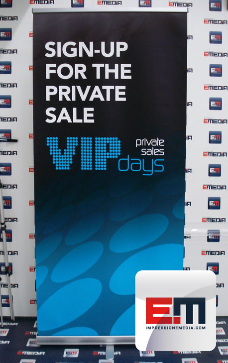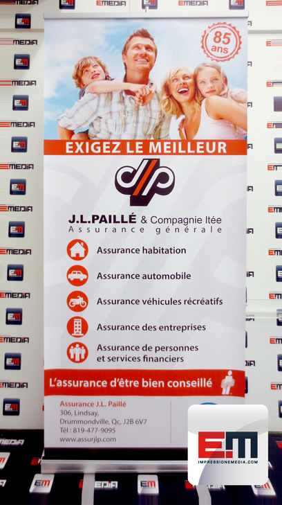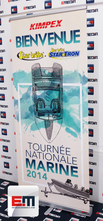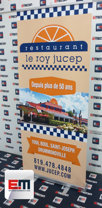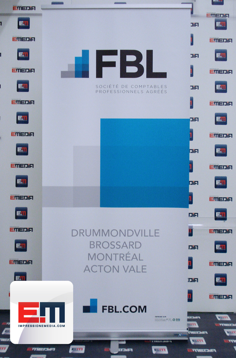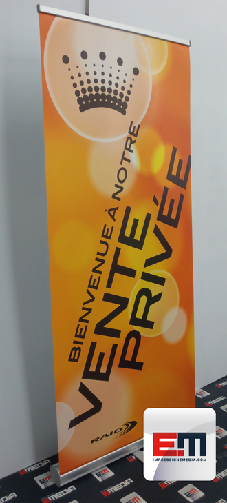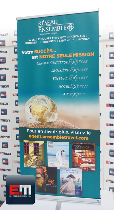 Léger, abordable et simple d’utilisation affichez-vous avec une Bannière rétractable (Roll up) d’Impression EMEDIA.